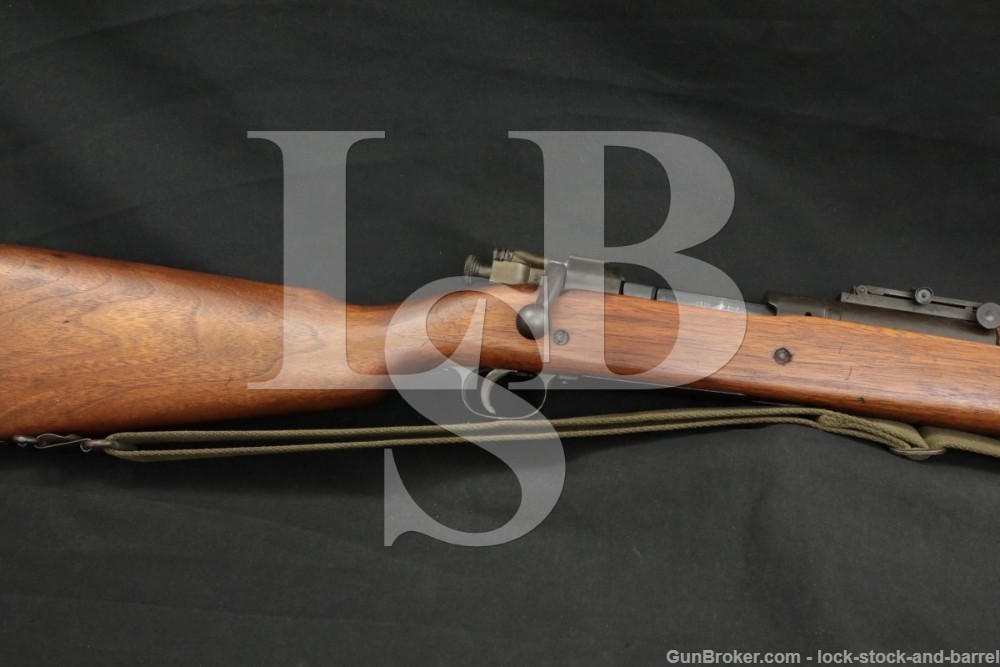 Which Bolt for Springfield 1903 Mark I - Northeastshooters.com Forums The front sight on the barrel was never installed on the A4 barrels, however, the notch for it was still in place. Stock is likely a replacement as it has no final inspector stamp on the left side.Rear Sights: Curved leg 7s (Springfield), Volley Notch, Small dished windage knob and dished elevation knob.T.C. Extra shipping cost of $3.00. It is possible that after Lynaugh handed in serial No. *1903 SPRINGFIELD RIFLE. *1903 SPRINGFIELD RIFLE. [16], Pyrometers were installed in December 1917 to accurately measure temperatures during the forging process. While the Krag had been issued with barrel lengths of both 30-inch rifle and 22-inch carbine models, the Springfield was issued only as a short 24-inch-barrel rifle in keeping with current trends in Switzerland and Great Britain to eliminate the need for both long rifles and carbines.[7]. Taking a cue from the Mauser Gewehr 98, a large safety lug was added to the side of the bolt behind the extractor, which engaged the receiver bridge and prevented the bolt from moving rearwards. Mark 1 rifles had a cutout on the left side of the receiver for the ejection of spent .32 cartridges.